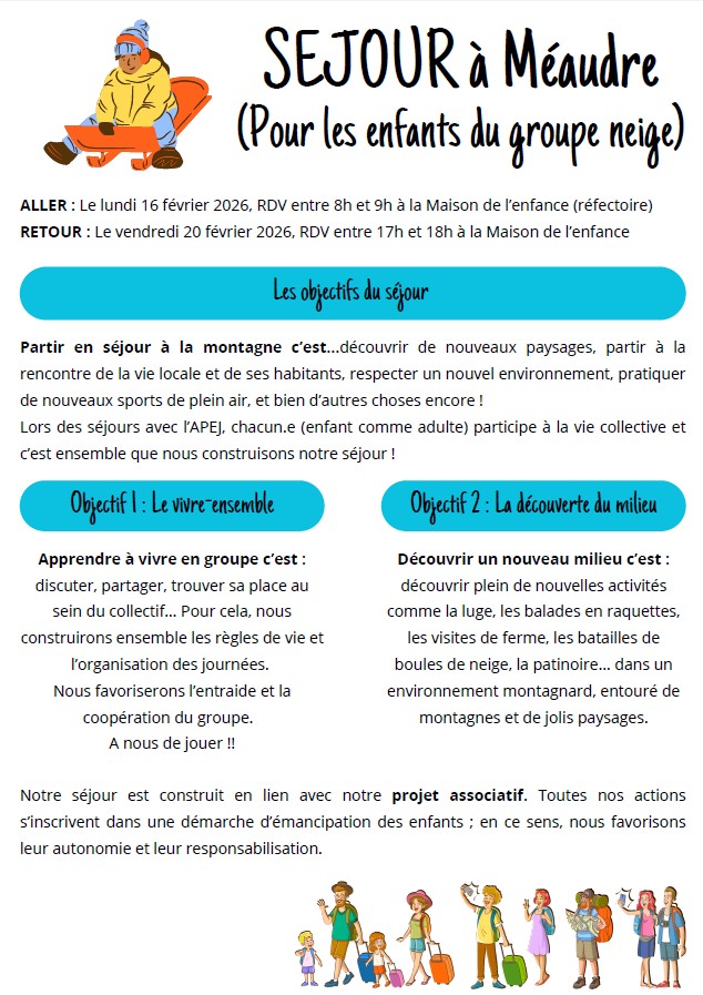 Nous accueillons les enfants sur chaque période de vacances, avec des activités variées selon l’envie des enfants. Nous organisons des séjours et des stages.